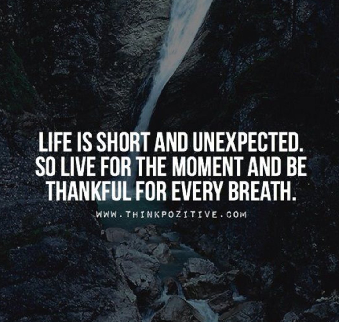 There will always be more to life than what we know. There will always be an unexpected turn, but it is how we handle it and how we continue to live after it, that really plays a role in our lives. “Life is short and unexpected. So live for the moment and be thankful for every breath.” So sure, I may not be where my parents wanted me to be academically, I may have failed. But life is short and unexpected. So I can sit here and cry and be upset, or I can pray and trust God and continue on. I choose to get back up and continue on, because though life will be full of more unexpected turns, I continue to trust God and follow him.