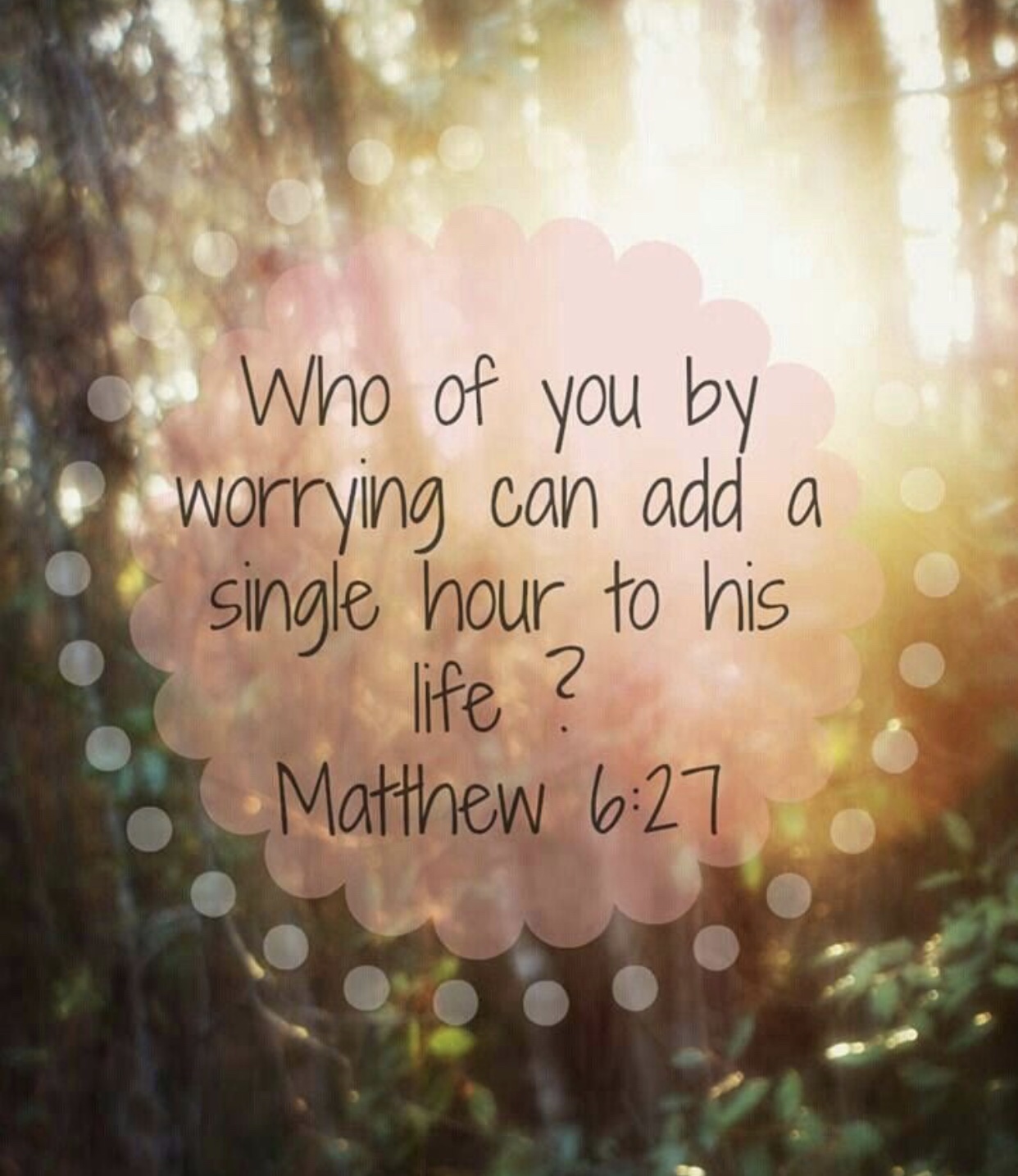 Proverbs 3:5- “Trust in the Lord with all your heart, and do not lean on your own understanding.” Often times we sit and we replay situations over and over. Debating what we could have done differently, what we did wrong. But the truth is, we need to stop that. There isn’t an answer to be found and God has a reason for everything. We may not always understand why something happened but we have to trust God. So if something is bothering you, let it go. Stop trying to find the answer and trust God, give it to him. Focus on the good in your life and stop trying to worry about the bad and why it happened.